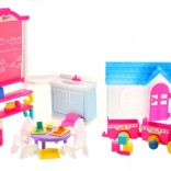 Schaffen Sie für Puppen das perfekte Umfeld mit dem reich ausgestatteten Glorie-Kindergarten-Set. Kinder lieben das Rollenspiel „Kindergarten“ mit realistischen Elementen wie der Tafel mit Regalen, dem funktionalen Waschbecken und dem Häuschen mit öffnenden Türen. Ebenfalls enthalten sind eine kleine Bahn, ein Tisch, Stühlchen sowie zahlreiche kleine Accessoires, Spielzeuge und Geschirr – alles für kreative Szenarien und täglichen Spielspaß.