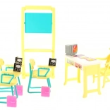 Im Lieferumfang enthalten sind eine geräumige Tafel, eine Lehrerecke mit Computer und Stühle für die Schüler. Dank der kompakten Abmessungen ist das Set mit gängigen Puppen kompatibel und lässt sich leicht verstauen.