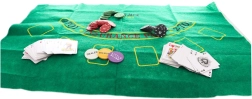 Das Set enthält Chips in verschiedenen Farben und Werten, Spielkarten und einen Dealer-Button für ein authentisches Spielerlebnis.