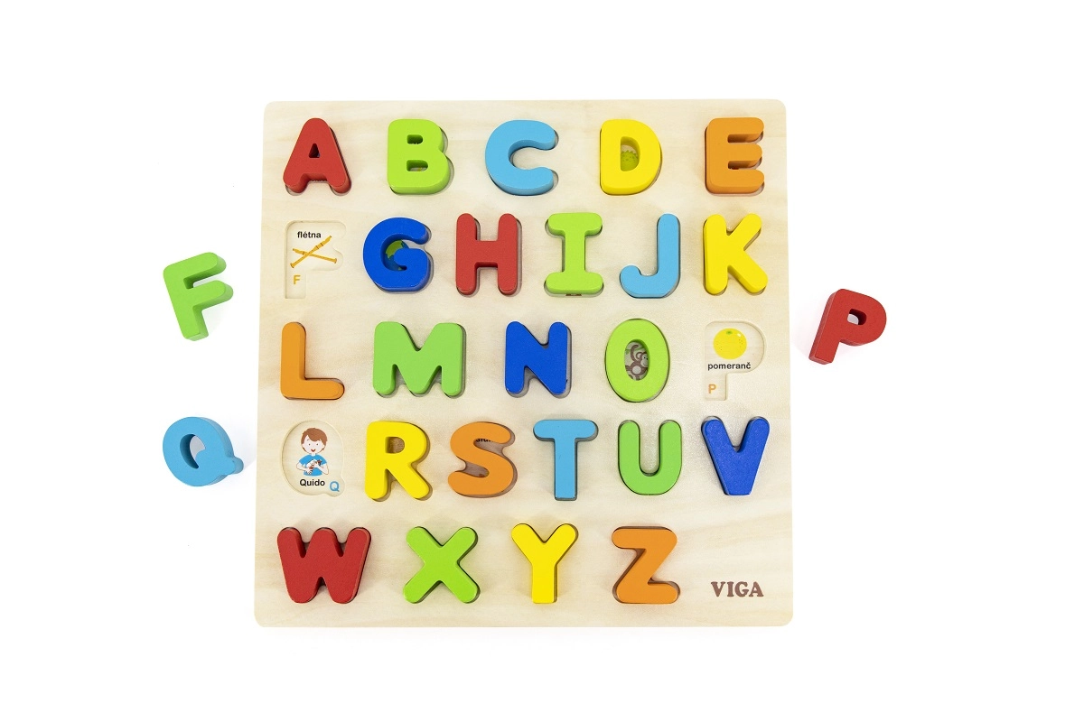 Entdecken Sie den Zauber des Lernens mit diesem wunderschönen Holzpuzzle, das insgesamt 26 Teile enthält, welche alle Buchstaben des tschechischen Alphabets darstellen.