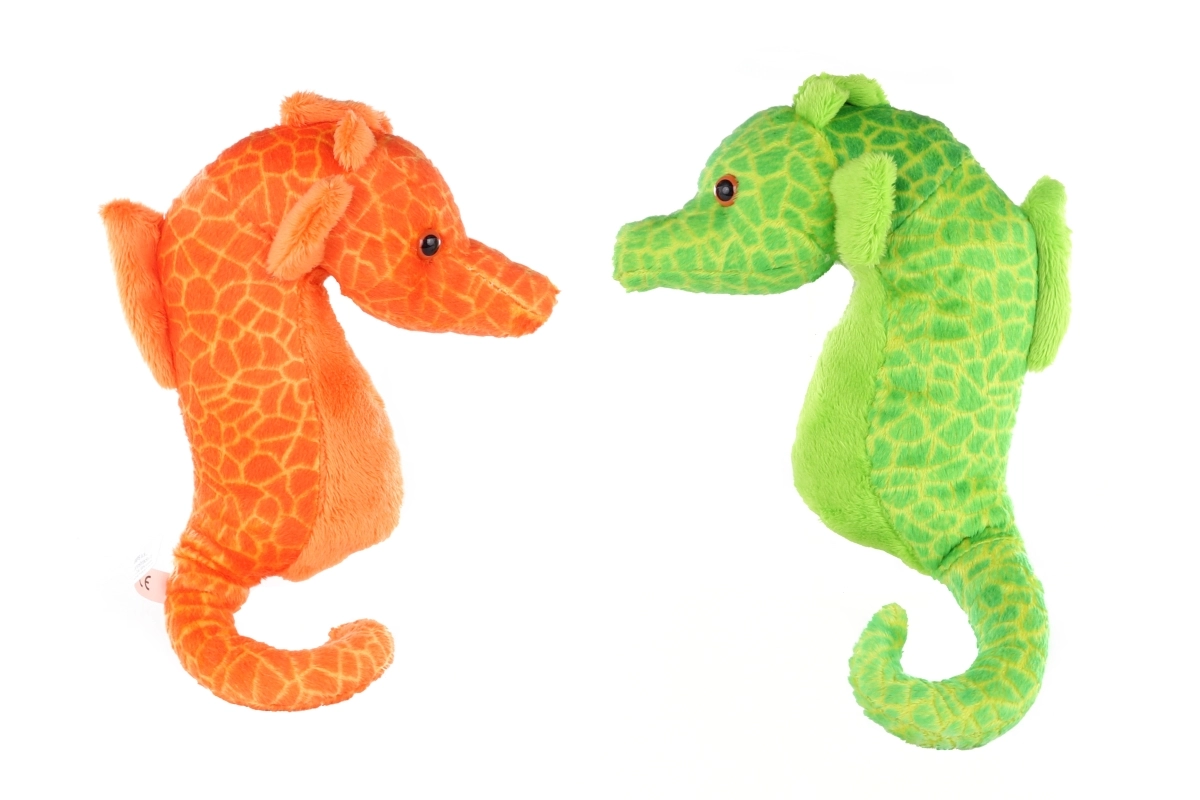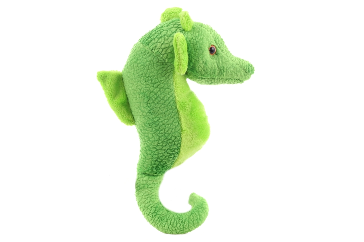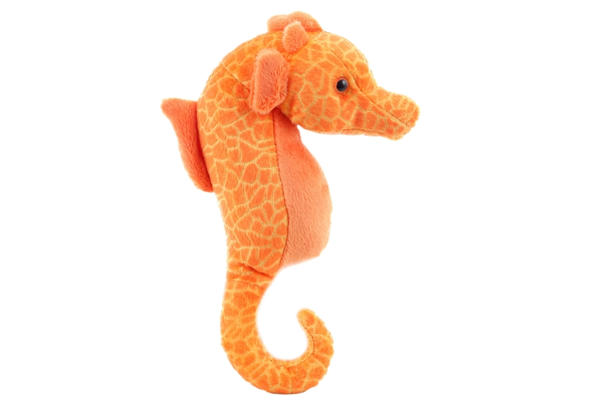 Dieses Plüsch-Seepferdchen bringt ein Stück Unterwasserwelt direkt ins Kinderzimmer. Es hat einen angenehm weichen Körper, einen eingerollten Schwanz und auffällige Details, die die Fantasie beim Spielen anregen. Dank der Größe von ca. 24 cm ist es ideal für Kinderhände und unterwegs.