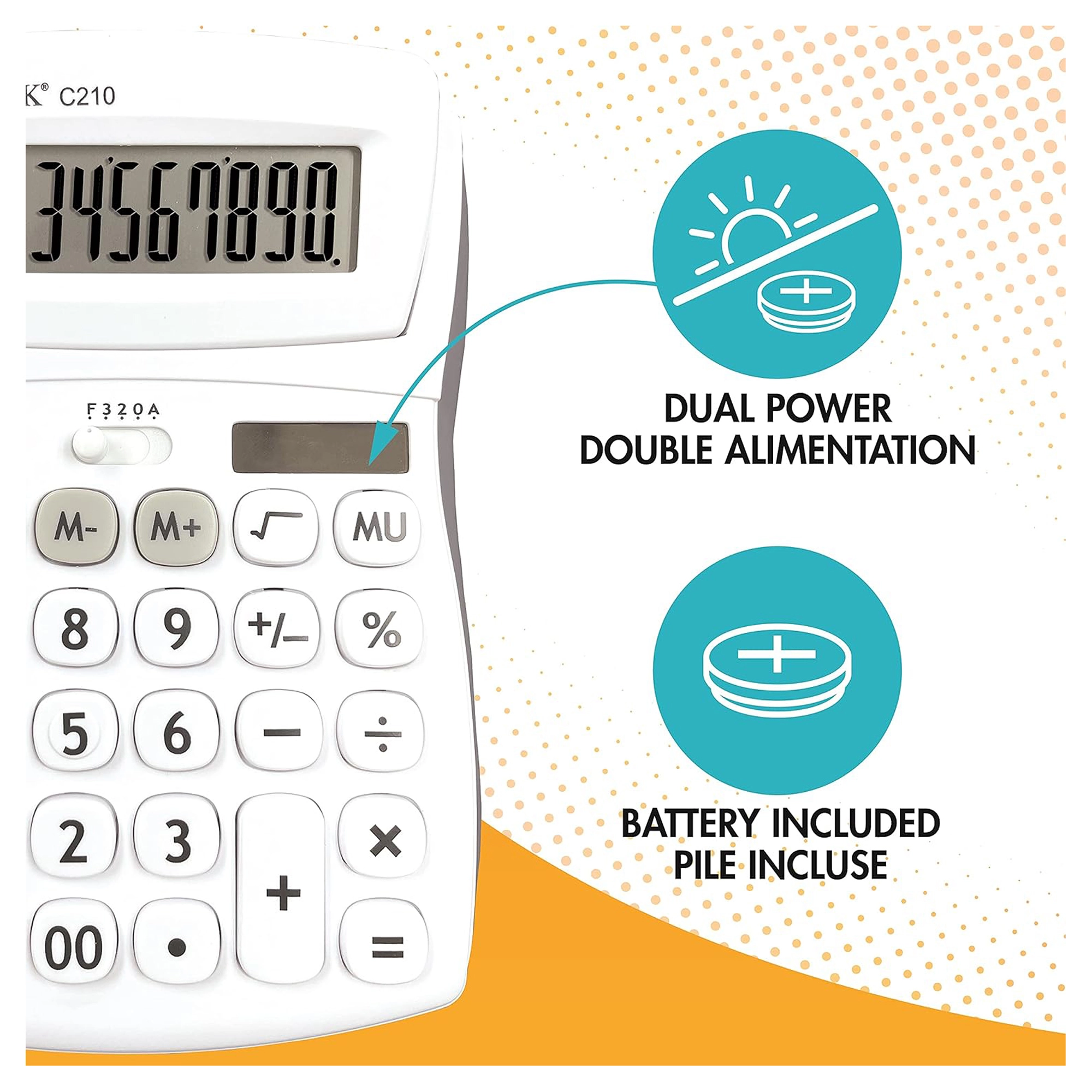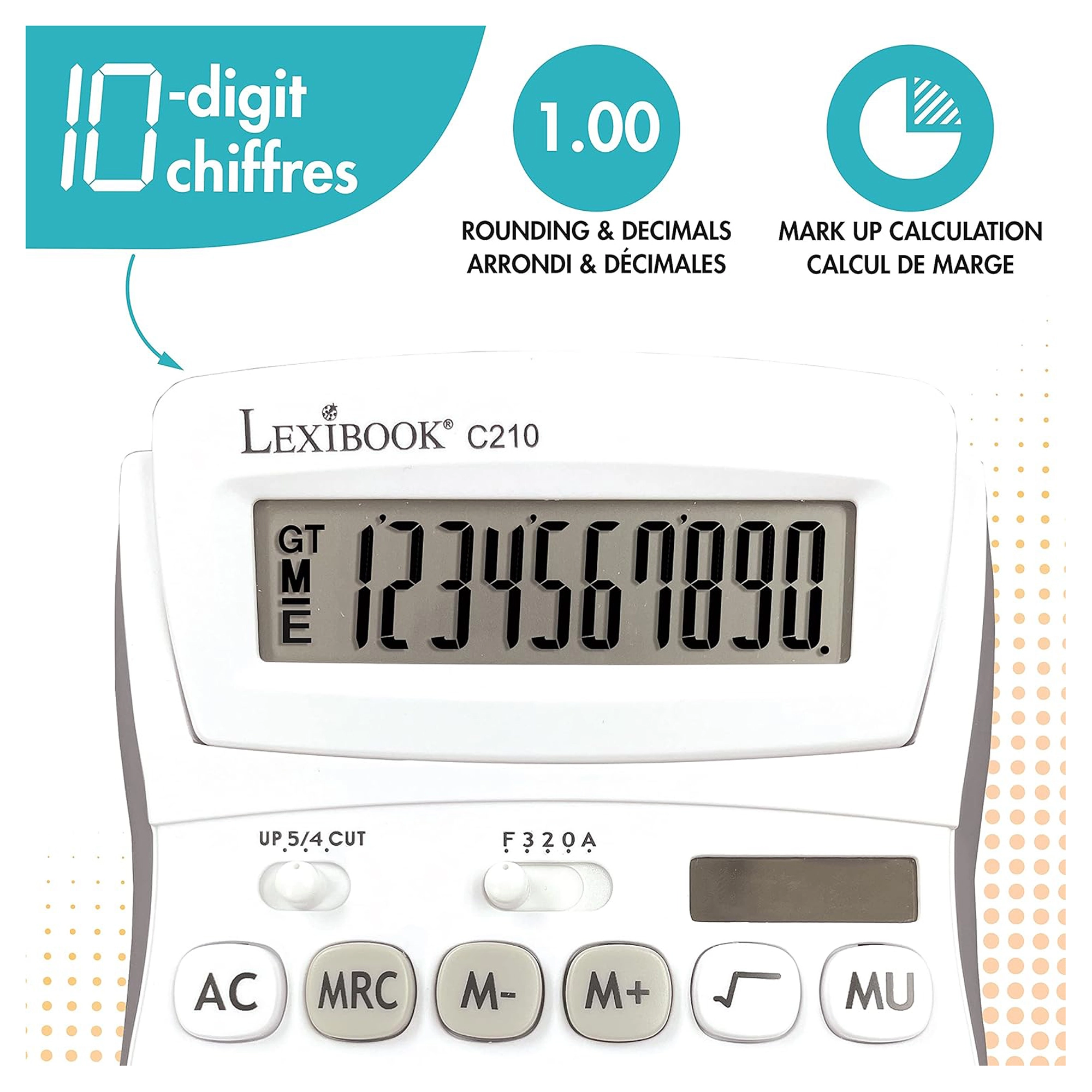 10-stellige Taschenrechner mit verstellbarem Bildschirmwinkel