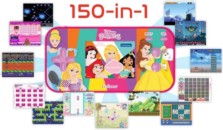 Die Taschenkonsole DISNEY Princess Compact II Cyber Arcade ist ein großartiger Begleiter für unterwegs. Sie bietet 150 Spiele (140 klassische + 10 thematische), die Reaktion, Logik und Kreativität fördern. Das 2,5"-Farb-LCD und die einstellbare Lautstärke ermöglichen bequemes Spielen zu Hause und draußen.