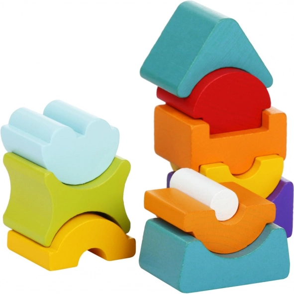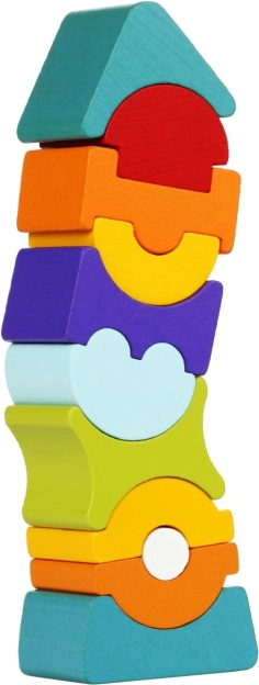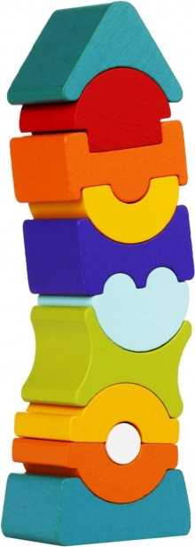 Abgerundete Teile ermöglichen, den Turm sowohl gerade zu bauen als auch seitlich zu neigen. Kinder üben bei jedem Versuch Geduld, Koordination und räumliches Vorstellungsvermögen.