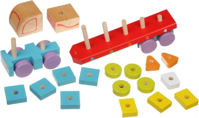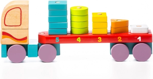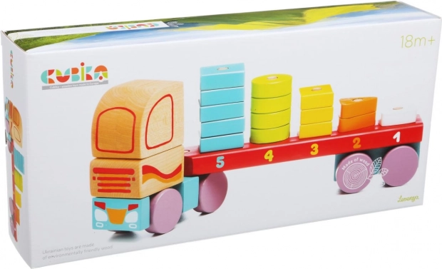 Holzpuzzle CUBIKA LKW mit geometrischen Formen ist mehr als nur ein Spielzeug. Mit 19 bunten Teilen können Kinder lernen, Formen und Farben zuzuordnen, was ihre sensorischen Fähigkeiten fördert. Jedes Teil ist so konzipiert, dass es in andere passt, und fortgeschrittene Baumeister können die Richtigkeit der gestapelten Teile anhand der Ziffern auf dem LKW-Untergestell überprüfen.