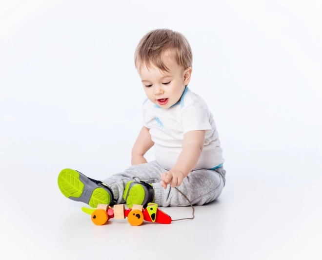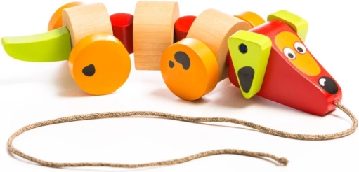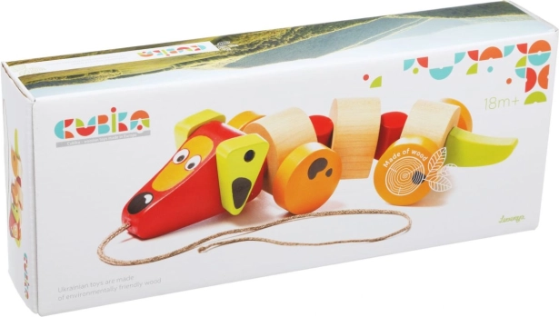 Dank stabiler Holzräder kann das Kind seinen neuen Freund überallhin mitnehmen. Es eignet sich hervorragend als Begleiter für Spaziergänge, sobald das Kind selbstständig laufen kann.