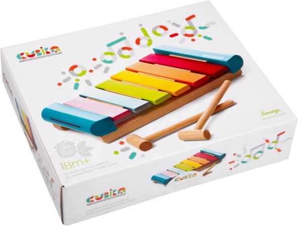 Das Xylophon der Marke CUBIKA ist aus ökologisch angebautem Holz gefertigt, was nicht nur hohe Qualität, sondern auch Umweltfreundlichkeit garantiert. Dank präziser Verarbeitung und einem bunten Design wird es zu einem beliebten Bestandteil von Kinderzimmern.