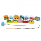 Das Set ermöglicht es Kindern, durch das Auffädeln der Blöcke auf eine Schnur Feinmotorik und Koordination zu entwickeln.