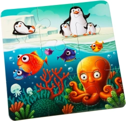 Fröhliche Illustrationen aus der Natur sowie aus der Wasser- und Polarwelt ziehen die Aufmerksamkeit auf sich und fördern das Kennenlernen von Tieren und ihren Lebensräumen.