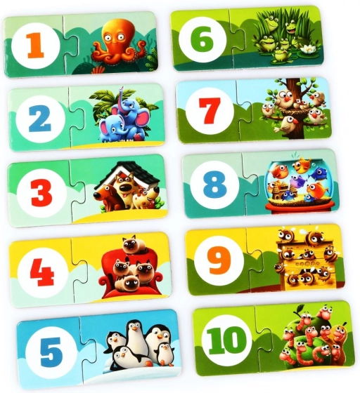 Entdecken Sie spielerisches Lernen mit dem PUZZLIKA-Puzzle, das Kinder bei ihren ersten Schritten in die Welt der Zahlen begleitet. Jedes Paar verbindet eine Illustration einer Tiergruppe mit der passenden Ziffer und fördert so auf natürliche Weise das Zählen von 1 bis 10, das visuelle Wahrnehmen und das Erkennen von Zusammenhängen. Große, stabile Teile lassen sich von Kinderhänden gut greifen und zusammensetzen.