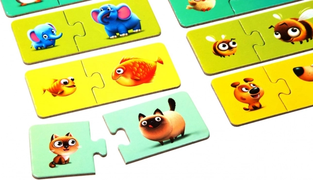 Puzzlika Meine Familie ist ein cleveres und spielerisches Puzzle für die Kleinsten, das aktives Lernen mit Spaß verbindet. Kinder finden passende Kartenpaare – Jungtiere und weitere Mitglieder ihrer Familie – und entwickeln dabei ihre Fähigkeiten in Erkennen, Aufmerksamkeit und richtigem Zuordnen.