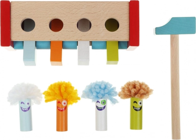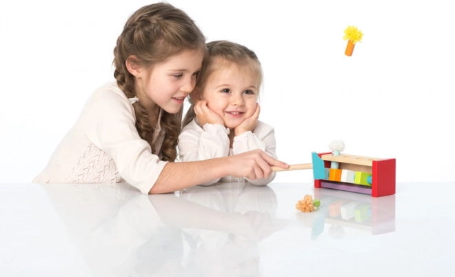 Jeder Schlag mit dem Hammer aktiviert den Mechanismus und ein Clown springt heraus. Kinder trainieren Reaktion, Genauigkeit und Geduld und verstehen zugleich das Prinzip von Ursache und Wirkung.