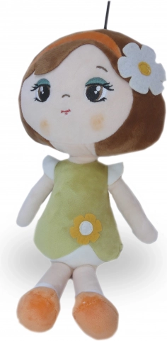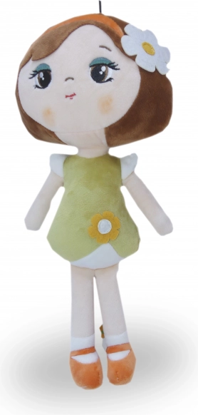Die Plüschpuppe Roma verzaubert mit ihrem zarten Look – braunes Haar mit Blumenverzierung, olivfarbenes Kleid mit Blümchen und orangefarbene Schuhe. Der feine, glatte und glänzende Plüsch fühlt sich angenehm an und lädt direkt zum Kuscheln ein. Dank der leichten Konstruktion können Kinder sie überallhin mitnehmen – ins Bettchen, auf Reisen oder zu Besuchen.