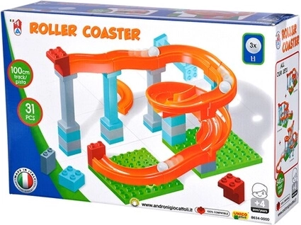 Die kleine Kugelbahn Androni Unico Plus bietet eine tolle Portion Spielspaß und Lernen in einem. Dank 31 farbiger Teile und 3 Kunststoffkugeln bauen Kinder leicht eine Strecke von bis zu 100 cm. Die Bausteine sind voll kompatibel mit LEGO DUPLO und lassen sich so mit weiteren Sets kombinieren, um die Spielmöglichkeiten zu erweitern.