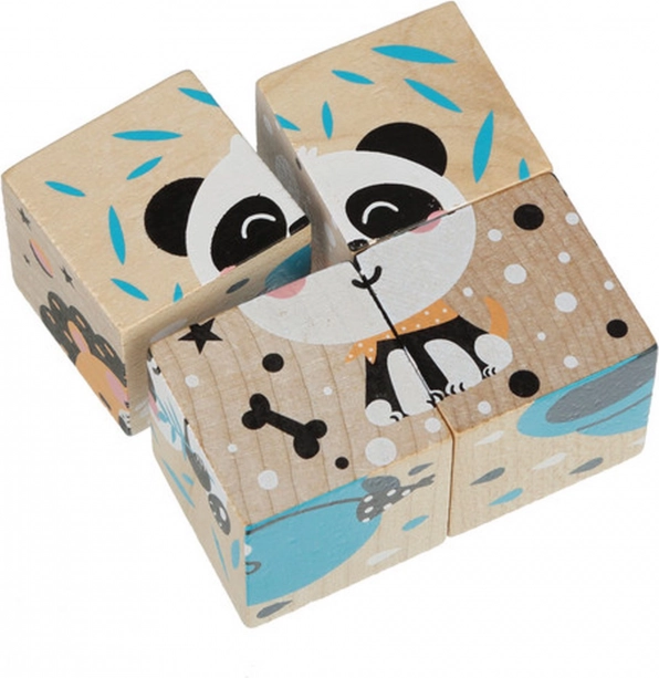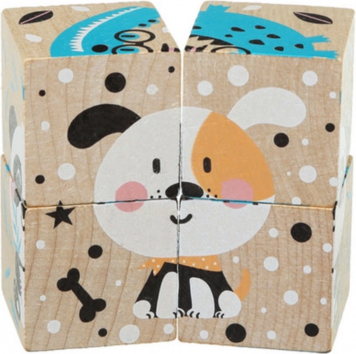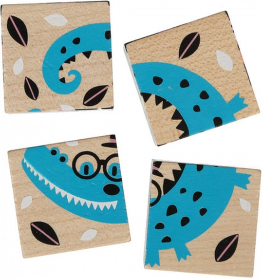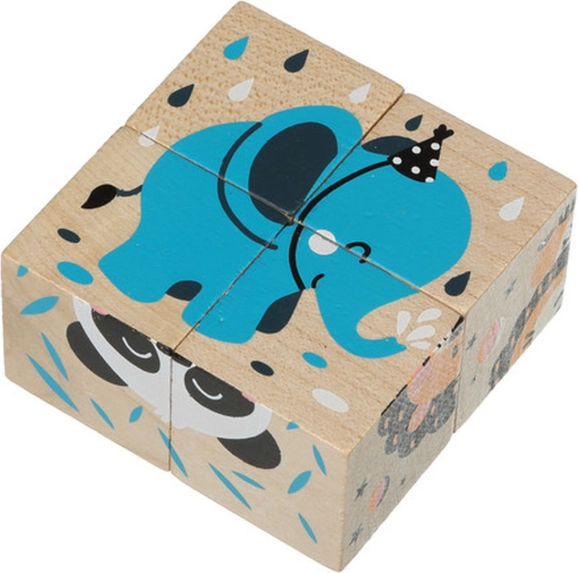 Die Holzpuzzle-Würfel Fröhliche Tiere ermöglichen es Kindern, bis zu sechs verschiedene Bilder mit fröhlichen Tieren zu bauen. Jede der vier Würfel ist sorgfältig aus ökologisch angebautem Ahorn und Buche gefertigt und mit sicheren, wasserbasierten Farben bemalt. Kernmerkmale: