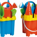 Eimer in Burgform, Gießkanne 0,5 l, Sieb, Schaufel, Harke, 2 Waffeln