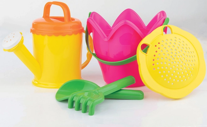 • Komplette Ausstattung: Eimer – Tulpe, Gießkanne 1,2 l, Sieb, Schaufel, Harke