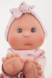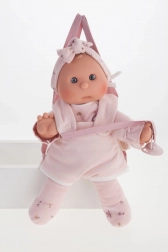 Diese handgefertigte spanische Puppe begeistert durch ihre Sanftheit, Qualität und den Fokus auf Kindersicherheit. Der weiche Stoffkörper ist kuschelig, Kopf und Gliedmaßen aus hochwertigem, weichem Vinyl wirken realistisch und sind leicht zu pflegen. Dank des magnetischen Schnullers können Kinder viele authentische Rollenspiele erleben.