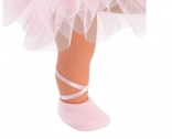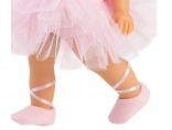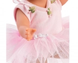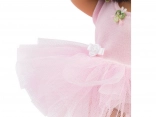Puppe Lu trägt ein rosa Ballettoutfit mit Tüllrock und Blumendekorationen, was sie zur idealen Begleiterin für kleine Ballerinas macht.