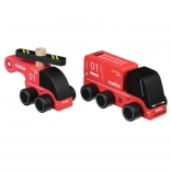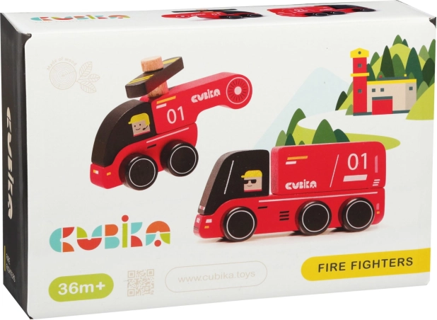 Schenken Sie Kindern kreatives Spiel mit dem Holzset CUBIKA Feuerwehr. Das Set besteht aus einem Feuerwehrauto und einem Hubschrauber aus erstklassigem Ahorn- und Buchenholz, lackiert mit wasserbasierten, geruchsarmen Farben. Dank abgerundeter Kanten und sorgfältiger Verarbeitung liegen die Teile auch in kleinen Händen gut und fördern Sensorik und Motorik, logisches Denken und Kreativität.