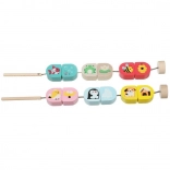 Das Holzset für Kinder Cubika „Wo wir wohnen“ verbindet Lernen und Spaß. Kinder suchen die richtigen Paare – Tier und sein Zuhause – und fädeln sie auf eine Schnur, wodurch sie ganz natürlich Feinmotorik und logisches Denken trainieren. Die Teile sind farbenfroh, robust und angenehm zu greifen.