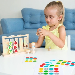 Enthalten sind 6 zweiseitige Karten mit bunten Mustern. Kinder platzieren die Stifte entsprechend an die richtigen Positionen und entwickeln ihr logisches Denken weiter.