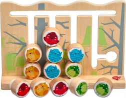 Entdecken Sie das unterhaltsame hölzerne Motorikspiel von Lucy & Leo, das die Feinmotorik, das logische Denken und das Farberkennen fördert. Kinder schieben bunte Vögel und Katzen in Schlitzen entlang der beiliegenden Vorlagenkarten – so wird Lernen zum Spiel.