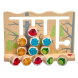 Große, leicht greifbare Stifte mit Bildern von Vögeln und Katzen motivieren Kinder zum wiederholten Spielen und trainieren Feinmotorik sowie Farben.