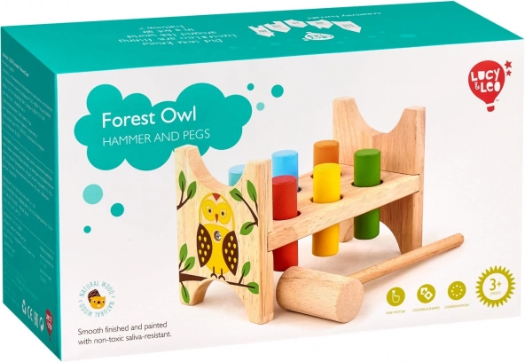 Diese hochwertige Holz-Klopfbank mit Wald-Eulenmotiv ist das ideale Spielzeug für Kinder, die aktive und sinnvolle Beschäftigung lieben. Sechs farbige Stifte und ein Holzhammer helfen Kindern, Präzision, Schlagkraft und Rhythmus zu trainieren.