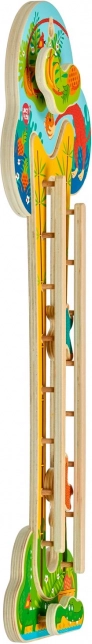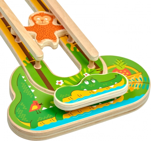 Entdecken Sie ein cleveres, fesselndes Spielzeug mit frischem Dschungelmotiv, das Kinder lange beschäftigt. An der Wand aufgehängt spart es Platz im Kinderzimmer und schafft eine ansprechende Spielzone. Zwei Holzäffchen sausen die doppelte Bahn hinunter, schlagen Überschläge und drehen sich – jede Fahrt ist spannend und anders.
