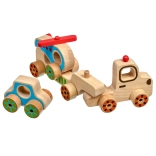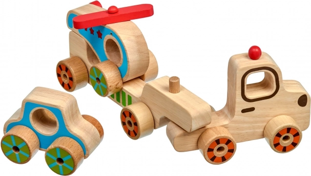 Lastwagen, Auto und Hubschrauber können einzeln verwendet oder zu einem Gespann kombiniert werden. Beim Beladen und Transportieren trainieren Kinder Vorstellungskraft und Logik.