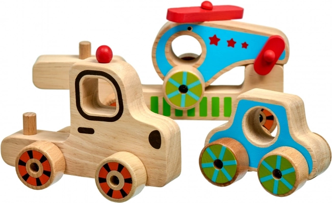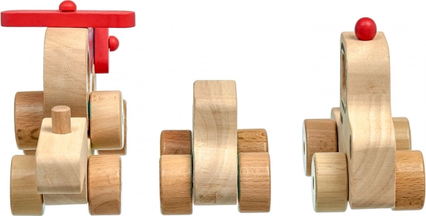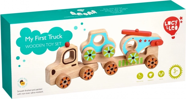Dieses Holzpuzzle für die Kleinsten verbindet Spiel und Lernen. Kinder können mit Lastwagen, Auto und Hubschrauber einzeln fahren und anschließend alles auf die Ladefläche verladen und „unterwegs“ sein. Farbige Akzente und einfache Formen fördern die visuelle Wahrnehmung, während die Handhabung der Teile Griff und Geschicklichkeit trainiert.