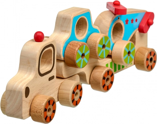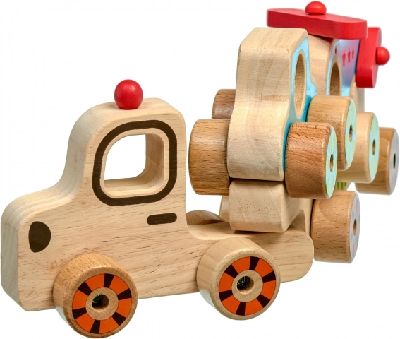 Rollende Räder sowie Aufstecken und Zusammenbauen der Teile fördern Greifen, Hand-Auge-Koordination und Geduld – ideal für erste Bau- und Verkehrsspiele.