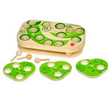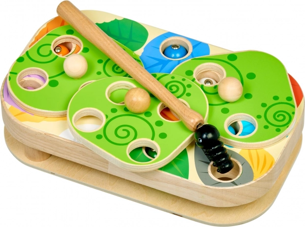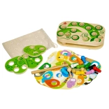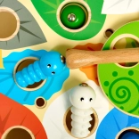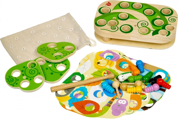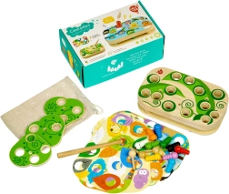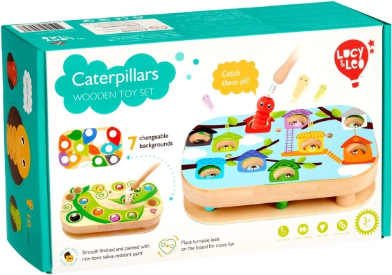 Das unterhaltsame und lehrreiche Spiel Lucy & Leo Raupenfangen fördert Feinmotorik, logisches Denken und die Hand-Auge-Koordination. Mit einem magnetischen Stäbchen fangen Kinder bunte Raupen und setzen sie in die Öffnungen der Holzplatte. Dank auswechselbarer Vorlagen und drehbarer Blätter lassen sich verschiedene Schwierigkeitsstufen ausprobieren.