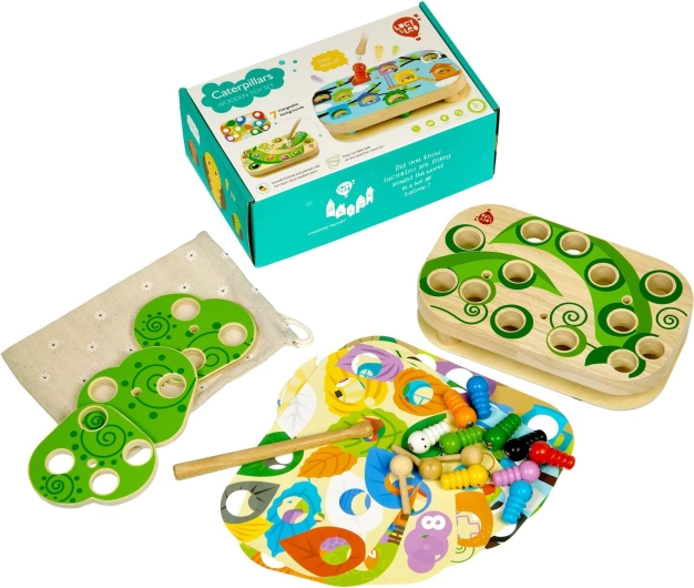 Der sichere Magnetstab hilft Kindern, die bunten Raupen in die Öffnungen zu setzen. Fördert Feinmotorik, Koordination und Geduld.