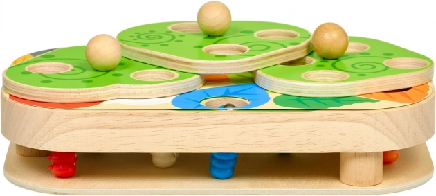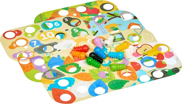 Fügen Sie die drehbaren Blätter hinzu, fixieren Sie sie mit Stiften und verwandeln Sie das Raupenfangen in eine dynamische Herausforderung, die Aufmerksamkeit und Planung trainiert.