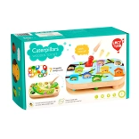 Dank 9 austauschbarer Vorlagen und drehbarer Blätter lässt sich der Schwierigkeitsgrad an Alter und Fähigkeit des Kindes anpassen. Die Oberfläche ist mit sicheren, speichelfesten, ungiftigen Farben behandelt, und die kleineren Teile lassen sich bequem im Leinensäckchen verstauen.