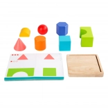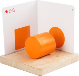 Kinder ordnen Zylinder, Kegel, Würfel und weitere Formen nach Vorlage zu und stärken so ihr logisches Denken und die visuelle Wahrnehmung.