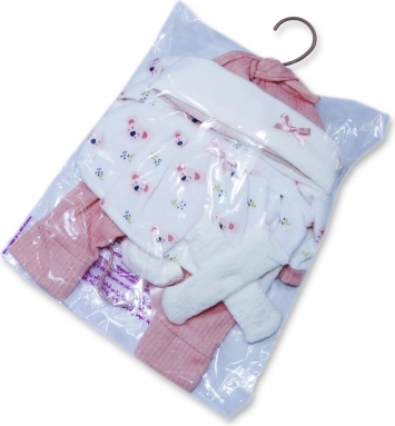 Das vierteilige Set umfasst Mütze, Kleidungsstück, Hose und Socken in aufeinander abgestimmten Farben, sodass die Puppe immer hübsch kombiniert und warm angezogen ist.