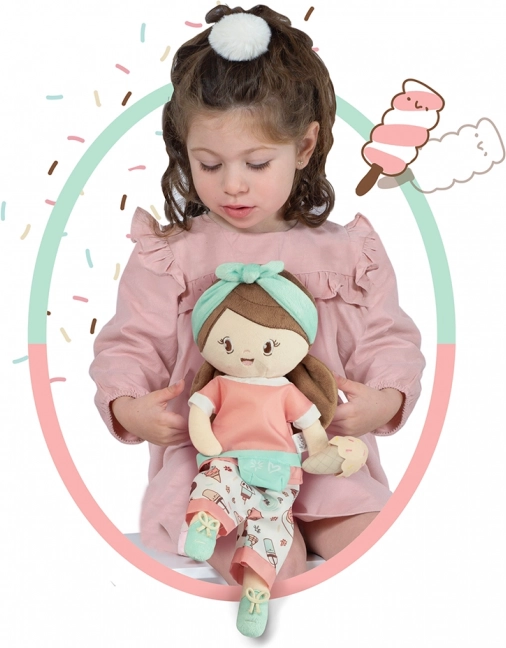 Die Plüschpuppe Sweet gehört zur beliebten Kollektion mit verspielten Motiven von Törtchen und Eis. Dank des weichen Körpers ist sie sicher und auch fürs Bettchen geeignet. Das geringe Gewicht und die kompakten Maße machen sie zum perfekten Begleiter für unterwegs und zuhause.