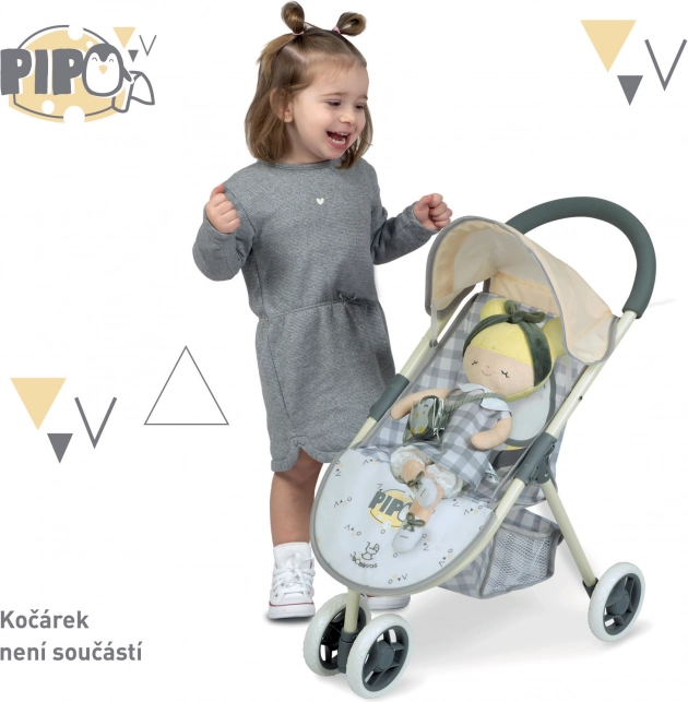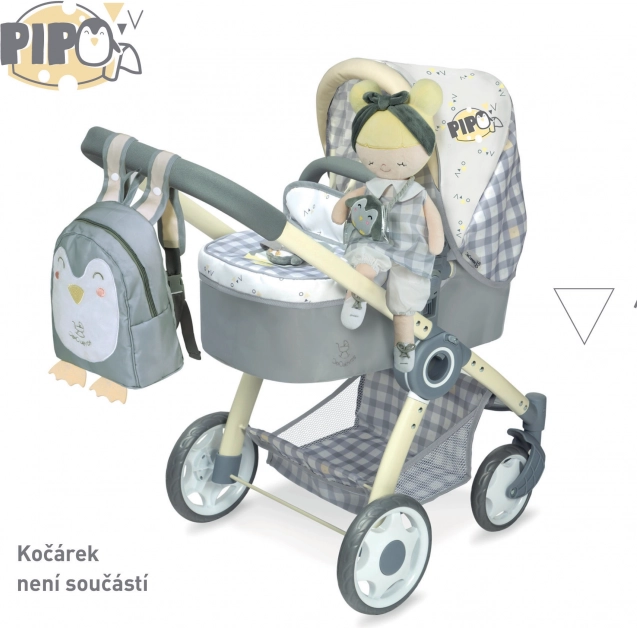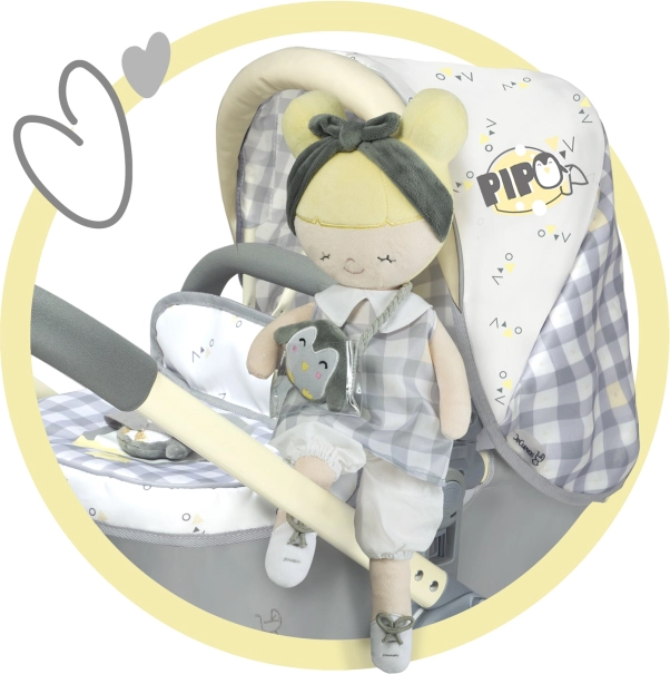 Puppe Pipo ist Teil der fantastischen Kollektion von 2022, die Sie lieben werden. Diese Kollektion umfasst Kinderwagen, Puppenmöbel und weiteres Zubehör für kleine Hausfrauen. Das charakteristische Design mit grau-weißem Karo und dezent gelben Akzenten mit Pinguinmotiv wird die Erwartungen jeder kleinen Prinzessin erfüllen.