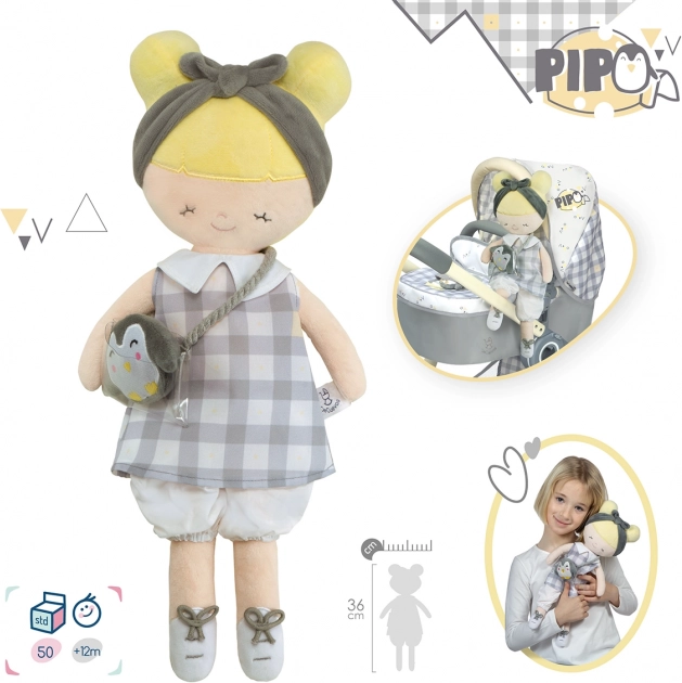 Plüschpuppe Pipo ist eine niedliche Kinderfreundin mit ihrem Plüschpinguin, ideal für jedes kleine Mädchen. Hervorzuheben ist ihr hochwertiger, weicher Plüsch und die Möglichkeit, sie zu waschen.