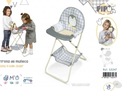Faltbarer Hochstuhl für Puppen Pipo 2022 ist Teil der neuen Kollektion 2022, die verschiedene Arten von Kinderwagen und Möbeln für Puppen sowie weiteres Zubehör bietet. Er bietet ein wunderschönes Design und eine einfache Handhabung.