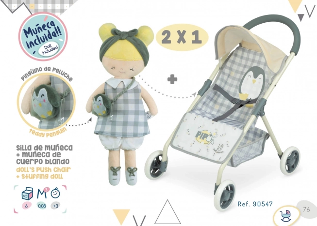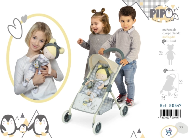 DeCuevas Sportwagen für Puppen mit Plüschpuppe PIPO 2022 ist Teil der neuen Kollektion für 2022, die hochwertige und stilvolle Accessoires für zukünftige Hausdamen bietet. Dieser Kinderwagen zeichnet sich durch sein elegantes spanisches Design und seine präzise Verarbeitung aus. Er ist leicht zu handhaben, was sowohl beim Spielen als auch beim Verstauen von Vorteil ist.