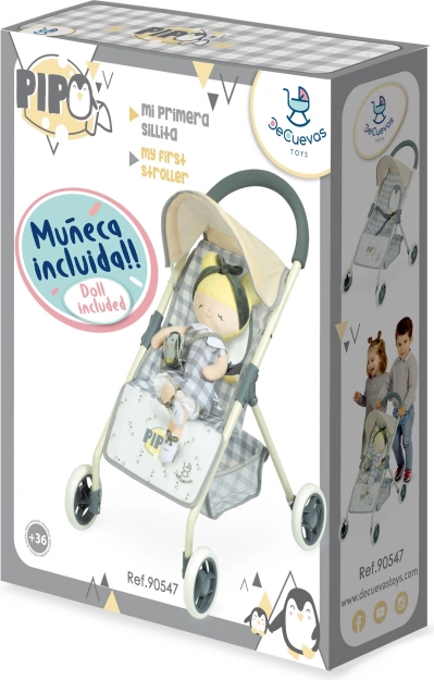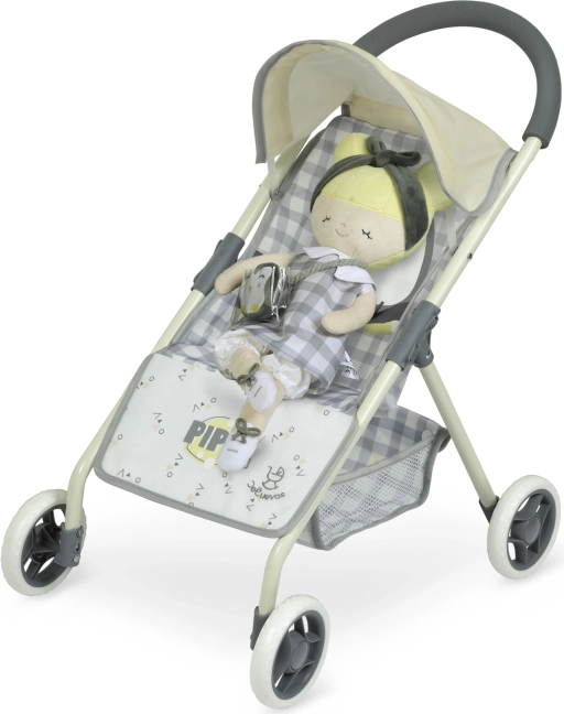 DeCuevas Sportwagen für Puppen mit der niedlichen Plüschpuppe PIPO ist ideal für kleine Damen. Dieses elegante Design in einer Kombination aus grauen und weißen Karos mit sanften gelben Akzenten bietet ein beeindruckendes Spielerlebnis.