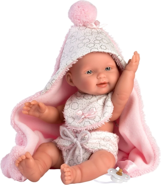 Dieses zweiteilige Set wurde speziell für die Babypuppe New Born in der Größe 26 cm entworfen. Es enthält eine wendbare Kapuzendecke, die die Puppe schützt und ihr das Aussehen eines echten Babys verleiht.