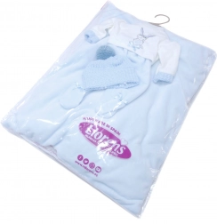 Kleidung für Puppe aus der New Born Kollektion ist ideal für Puppen der Größe 35-36 cm. Dieses niedliche Set umfasst 3 Teile und ein Kissen, das als Unterlage verwendet werden kann. Es wird in Spanien hergestellt und die Verpackung enthält eine Plastiktüte mit einem Kunststoff- oder Kartonbügel. Geeignet für Kinder ab 3 Jahren.