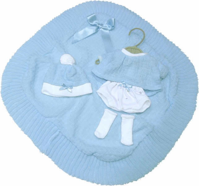 Das Set enthält ein Oberteil, Hütchen, Socken und eine Decke, die zusammen das perfekte Aussehen Ihrer Puppe bilden.