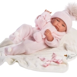 Stilvolles 3-teiliges Set für Babypuppe New Born von der Marke Llorens, Größe 43-44 cm, beinhaltet eine dekorative Fleecedecke mit Schleife. Hergestellt in Spanien und bietet einen perfekten Look für Ihre Puppen.