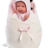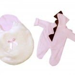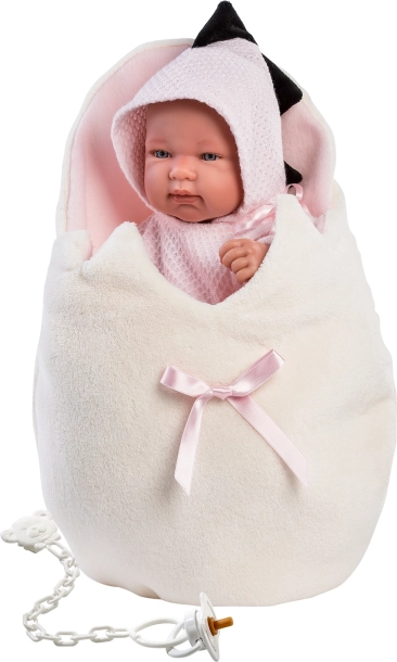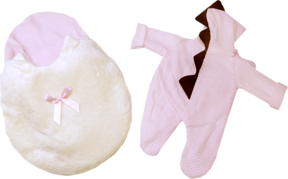 Der Fleeceschlafsack stellt ein Dinosaurier-Ei dar und ist ideal, um die Puppe warm und bequem zu halten.